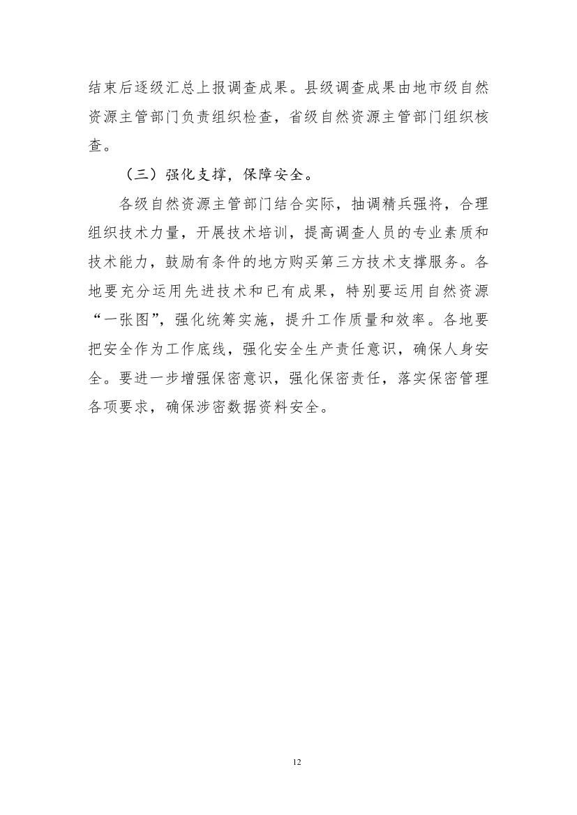 各地要把安全作为工作底线,强化安全生产责任意识,制定应急预案,确保人身安全。要强化保密责任,加强保密教育,落实保密管理各项要求,确保涉密数据资料安全。